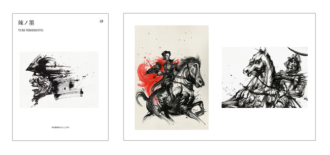 本展「竦ノ墨(スクミノスミ)」は、西元がアーティストとして活動を始めて間もない頃から描いてきた“侍”にフォーカスし、新旧作品12点で構成。潔さや闘争心の象徴ともいえるモチーフを通して日本人のアイデンティティを表現します。