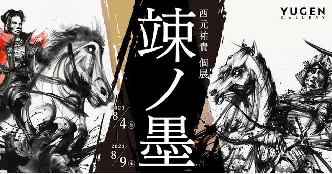 世界から注目を集め続けている墨絵アーティスト、西元祐貴。世界に5,000万人のユーザーがいるアメリカ発のトレーディングカードゲーム「マジック:ザ・ギャザリング」に墨絵作品が起用されたのを皮切りに、イタリアの高級スポーツカー〈フェラーリ〉のイベントでのライブペインティング、ユネスコ無形文化遺産である福岡・博多祇園山笠の飾り山笠「十五番山笠ソラリア」のイメージアート、「世界水泳選手権2023福岡大会」の会場装飾の一部を担当(※)するなど2023年も活躍は止まることがありません。