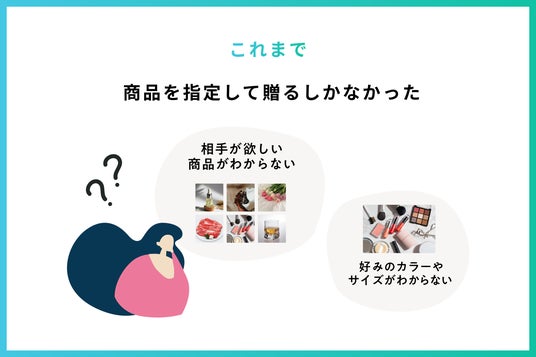これまでAnyGiftでは、食品や化粧品、ライフスタイルブランド様をはじめとした実際の商品や、飲食店や美容サロンなどの店舗体験をeギフトで贈ることができる機能を提供してまいりました。しかし、購入時に商品を指定してギフトを贈るしかなかったため、「相手の欲しい商品がわからない」「相手の好みのカラーやサイズがわからない」といったお悩みの声をいただくことがございました。
