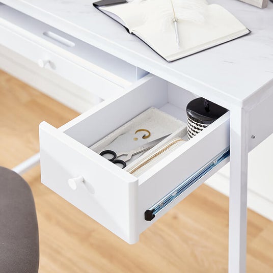 おすすめポイントは、サイズ感の良さです!デスクワークに十分な天板の広さがありながら、お部屋を圧迫しにくいので一人暮らしのコンパクトな空間にも置きやすいのが魅力です。さらに収納力もあるため、デスク周りをすっきり保てるのも嬉しいポイントです。
