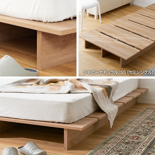 両サイドにしっかり余白があり、スマホや充電器、アクセサリーなどの小物をまとめて置けるのが便利。ローベッドタイプなので空間に圧迫感が出にくく、インテリアにも自然になじむシンプルさも気に入っています。