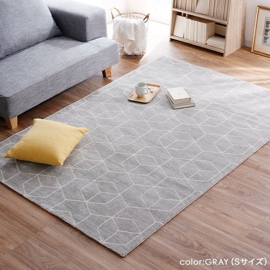 上にカゴを置いて跡がついてしまっても、手で馴染ませればすぐ元通りになります。派手すぎず地味すぎない「ちょうどいい柄」でどんなインテリアにも馴染むので、本当に重宝しています!