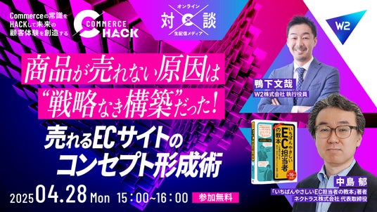最先端ECプラットフォームを展開するW2株式会社(本社:東京都中央区、代表取締役:山田大樹、以下W2)は、映像メディア「Commerce Hack」にて、映像コンテンツ「うまくいかない原因は“コンセプトなきECビジネスの構築”だった!成功するECビジネスのコンセプトについて」を2025年4月28日(月)15:00よりリアルタイム限定配信します。