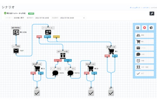 弊社のマーケティングオートメーションツールを利用することで、メール未開封の人にLINEで配信することや、LINEを用いた配信の内容をABテスト、最適化運用、PDCA運用が可能になります。