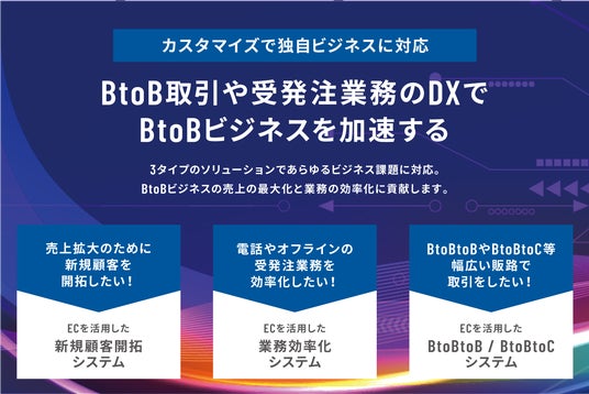 新サービスである、受発注業務のDX化により業務効率化・新規顧客開拓を実現する「BtoB向けECプラットフォーム」や、大規模EC開発、越境EC支援サービスなど、多岐に渡るサービス展開を通じて、