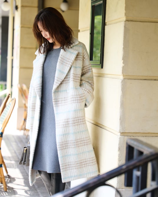 5. Shaggy Long Coatニュアンスカラーのチェック柄とオーバーシルエットが洒落感を誘う