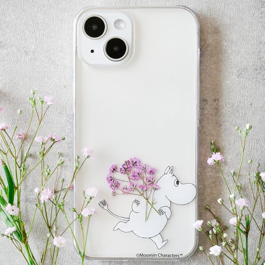 本物のかすみ草を押し花に。クリアケースなので、スマホ本体のカラーで合わせて楽しめます。ムーミン好きさんへのギフトとしてもおすすめ。