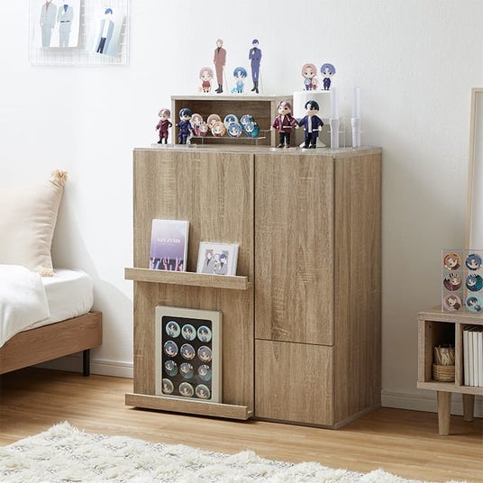 お気に入りのグッズを美しくディスプレイできる一方で、生活感の出やすいアイテムは扉内にすっきり収納可能で、限られた空間でも“推し”と心地よく暮らせる設計が特長です。