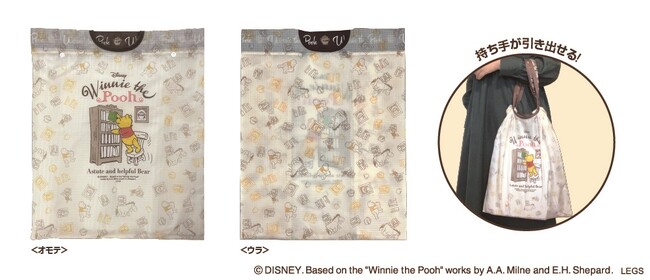 表面にプーさんがデザインされた、持ち手を引っ張り出して使用できるエコバッグです。小さく折り畳むことが出来るので、持ち運びにも便利です。