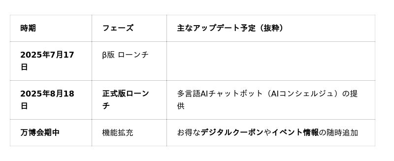 正式版で導入される「AIコンシェルジュ」は、ユーザーの好みや現在地に応じておすすめの観光ルートや飲食店を提案するなど、パーソナライズされた観光案内を実現します。