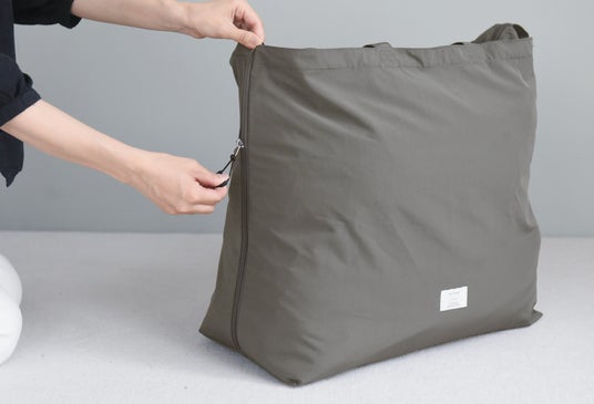 シングルサイズの羽毛布団も入る大容量バッグに変身します。