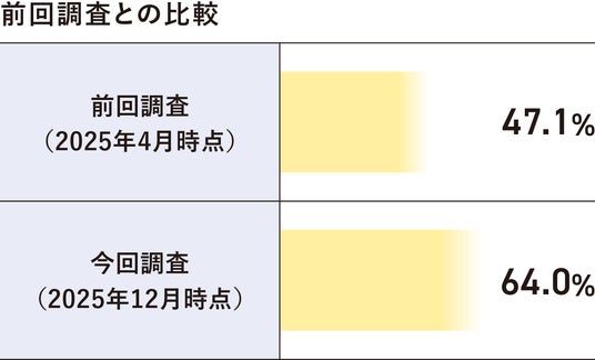 64.0%に達しました。前回調査(2025年4月時点)の47.1%から16.9ポイントの大幅アップとなり、短期間で商品検索におけるAI活用が急速に浸透しています。