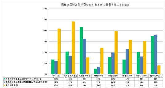 ・重視するパフォーマンス:ギフト用はビジュアル、食卓用はボリューム感