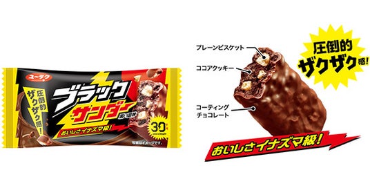 ブラックサンダーのザクザク感とムースのなめらかな食感のマリアージュをお楽しみください。また、食感だけでなくブラックサンダーの持つチョコレートの香りやビスケットの香ばしさも感じていただける味わいに仕上げております。