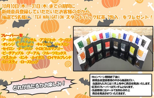 株式会社タチバナ産業株式会社タチバナ産業(埼玉県春日部市、代表取締役:野原将彦)は自社サイト「だんぼーる本舗」で、10月10日(木)~10月31日(木)の期間中、スタンドパック紅茶のプレゼントキャンペーンを開始します。