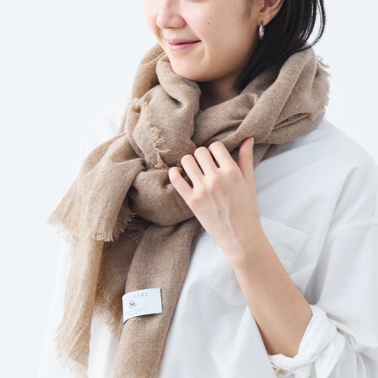 極上の天然カシミヤ素材を、薄く、軽く織り上げた大判ストール。