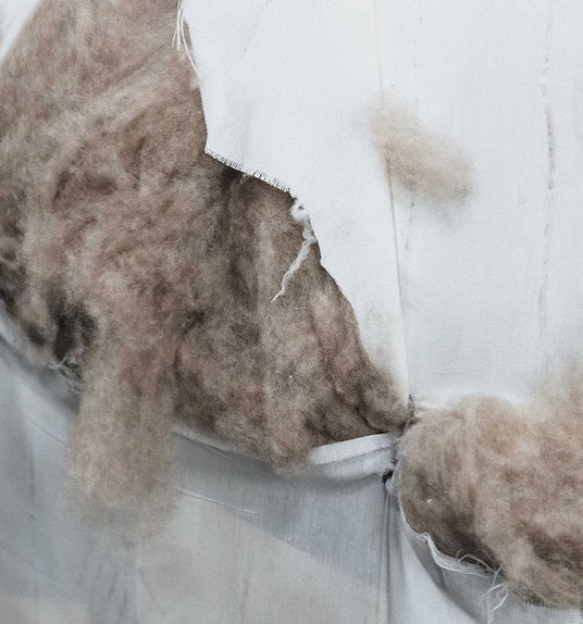 ▲内モンゴルから届いた選び抜かれたカシミヤ原毛。正しい原毛が届いたかのチェックも徹底的に確認されます