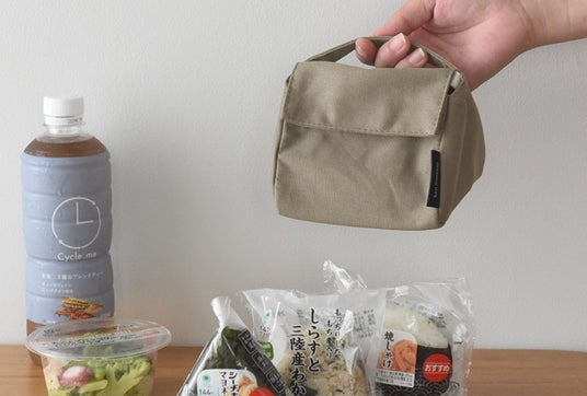 おにぎり以外にも小さめの密閉容器に入れたおかずやフルーツを入れたり、ゼリー飲料なども入れやすいサイズ感になっています。