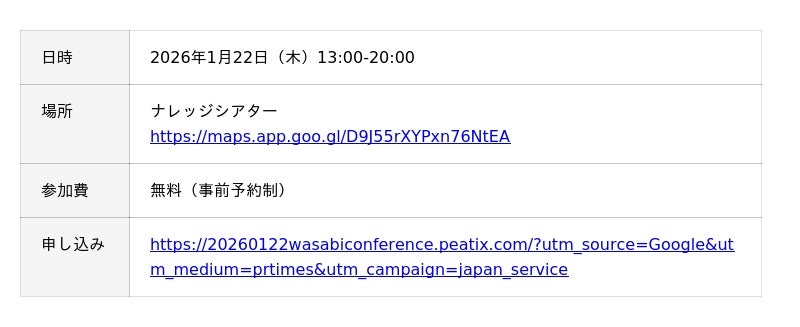 本件に関するお問い合わせ担当者:株式会社ワサビ 広報担当