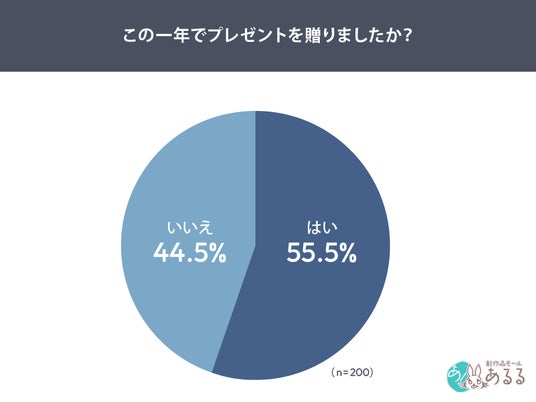 ほぼ半数の人がこの一年でプレゼントを贈っている結果となりました。
