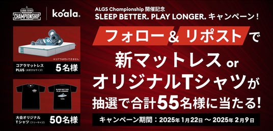 コアラスリープジャパン株式会社(本社:東京都渋谷区、代表:ルスラン・プソノク)は、エレクトロニック・アーツが主催するバトルロイヤルシューティングゲーム「Apex Legends Global Series Year 4 Championship 日本語放送(以下ALGS - Championship)」に協賛し、睡眠を通じて日本のeスポーツ選手たちの活躍を応援いたします。この協賛を記念して「SLEEP LONGER. PLAY BETTER.」プレゼントキャンペーンも実施いたします。