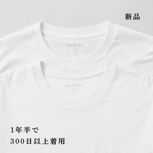 冒頭でもご紹介した、新品と年間200日間着用したスタッフ私物Tシャツの比較。