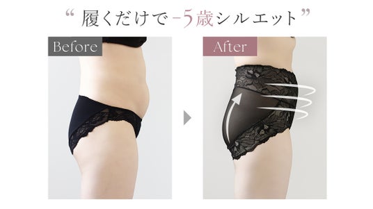 さらに、ハイウエストになったことで従来の商品よりもお腹まわりのカバー力がアップし、履くだけでマイナス5歳シルエットに。