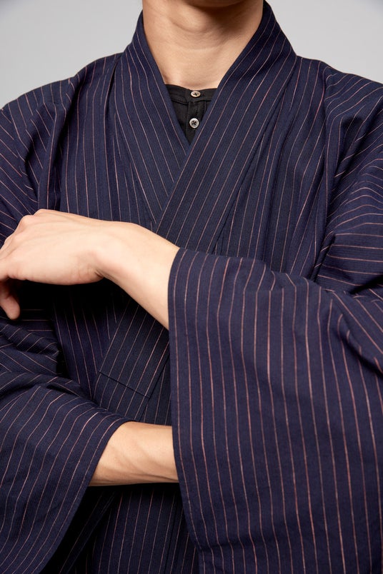 きもの:片貝木綿 / 平織り / 細縞 / 藍 弁柄 価格:68,200 円 (税込・仕立て付き)