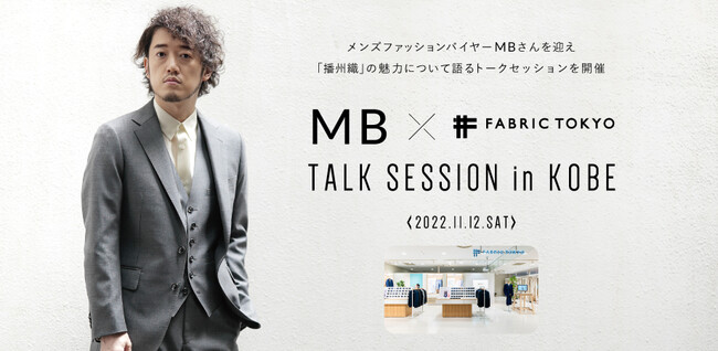 株式会社FABRIC TOKYO(本社:東京都渋谷区、代表取締役CEO:森 雄一郎)は、2022年11月12日、ファッションアドバイザーMBさんとコラボレーションし、FABRIC TOKYO 神戸三宮にて入場無料のイベント「MB×FABRIC TOKYO TALK SESSION in KOBE」を開催します。