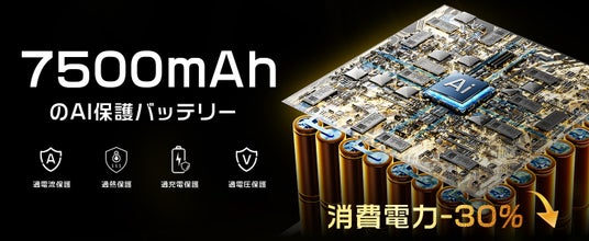 7500mAhバッテリー&AI保護で持続力抜群1回の充電で最長150分使用可能な大容量バッテリーを搭載。