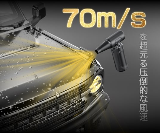 従来比2倍の風量 を誇り、最大風速70m/sで、手強いホコリも一瞬で吹き飛ばします。さらに、ブラシレスモーターを採用しているため、騒音を抑えながらエネルギー効率を向上。軽やかな使用感と強力な清掃力を同時に実現しました。