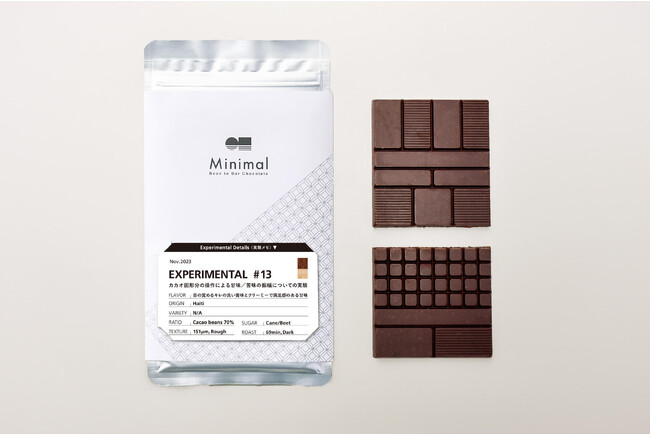 株式会社Bace株式会社βace(東京都渋谷区、代表取締役:山下貴嗣)が展開する、日本発のスペシャルティチョコレート専門店 「Minimal - Bean to Bar Chocolate - (ミニマル)」( https://mini-mal.tokyo/ ) は、数量限定で販売する特別な実験的チョコレート「EXPERIMENTAL #13 - カカオ固形分の操作による甘味/苦味とクリーミーで満足感のある甘味 -」をオンラインストアでは2023年12月8日より、富ヶ谷本店では2023年12月12日より、数量限定で販売します。