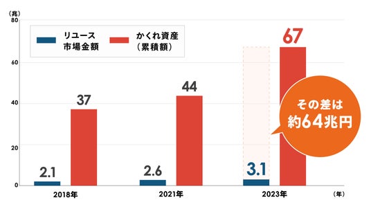 ※1:メルカリ 2023年版 日本の家庭に眠る“かくれ資産”に関する調査 ※2:リユース経済新聞 リユース業界の市場規模推計