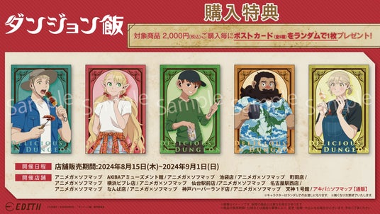 特設サイトhttps://a.sofmap.com/contents/?id=animega-sofmap&sid=delicious-in-dungeon_fair2408販売情報【アニメガ×ソフマップ取扱い店舗】