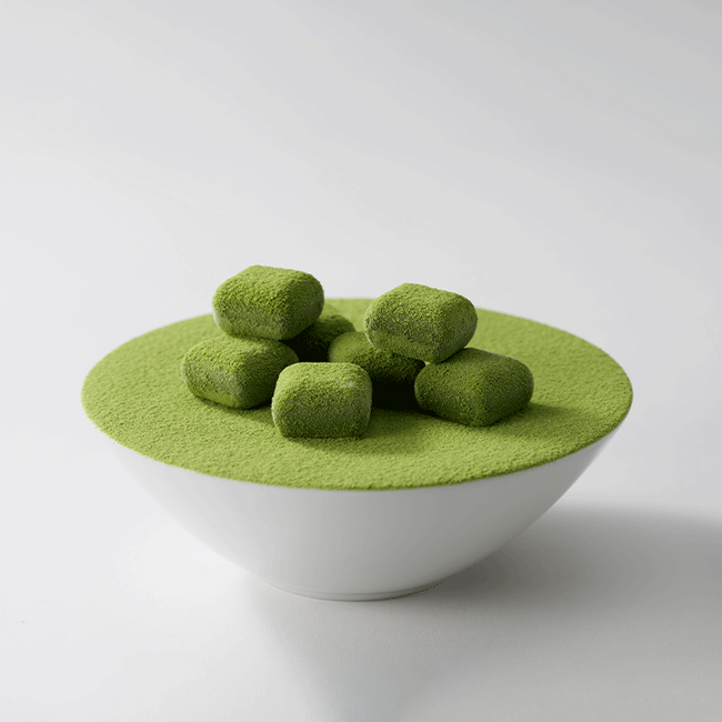 最高級の八女抹茶が口いっぱいに広がる豊かな香り。鮮やかな佇まいとベルベットのようになめらかな口溶け、八女茶の旨み。