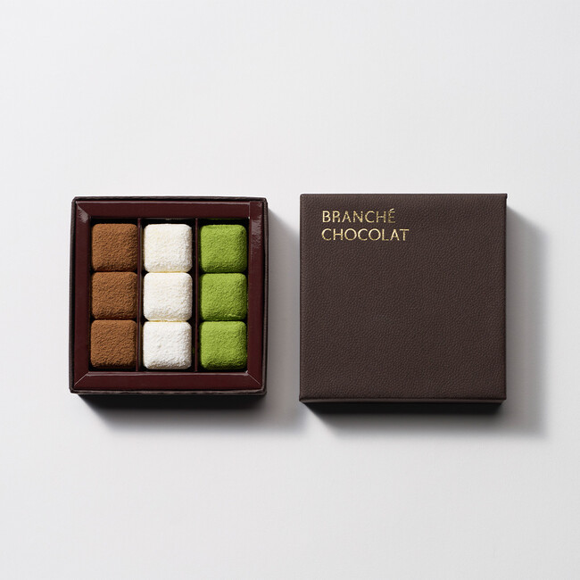 この特別なアソートメントは、ブランシェ・ショコラの人気商品である3種類のカレ・オ・ショコラを、一口サイズの生チョコレートに仕立てた贅沢な味わいのセットです。