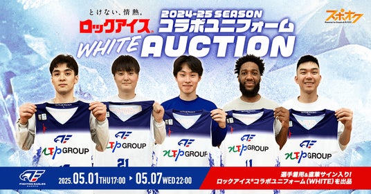 株式会社モバオク(本社:東京都渋谷区、代表取締役社長:生田目 知之、以下モバオク)がエンゲート株式会社(本社:東京都中央区、代表取締役:城戸 幸一郎、以下エンゲート)と業務提携し提供するスポーツチーム公式オークションサービス「スポオク」にて、B.LEAGUE所属のファイティングイーグルス名古屋が実施する『FE名古屋 2024-25 SEASON ロックアイス(R) コラボユニフォームオークション』を2025年5月1日(木)から開始します。