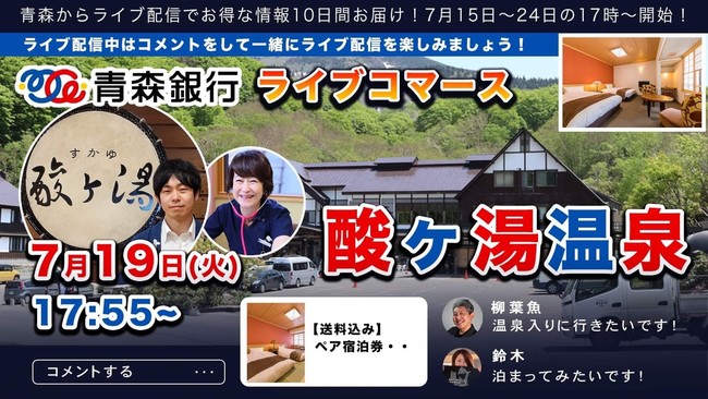 青森県内の事業者が集まり、10日間にわたりライブ配信で商品をアピールいたします。配信中に購入いただいた方には素敵な特典もございます。ライブコマースはライブ配信の際にコメントをし、商品の気になるところを質問出来るので、出演者とコミュニケーションを取りながら購入することが出来ます。7月15日の1回目のライブ配信では、無料キャンペーンの企画も行いますので、是非ご覧ください。ライブ配信を通して、青森の訛りや人柄に触れ、10日間たっぷりとライブ配信で青森旅行をお楽しみください。