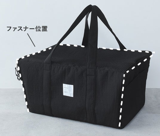 ファスナーはバッグの手前部分までガバッと開くので、車にトランクにカゴを積む時もラクラク。