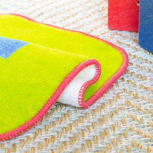 絵本の鮮やかなカラーそのままに、あかちゃんが大好きな場面をデザイン。指差ししたくなるようなワクワクするミニタオルが完成しました!