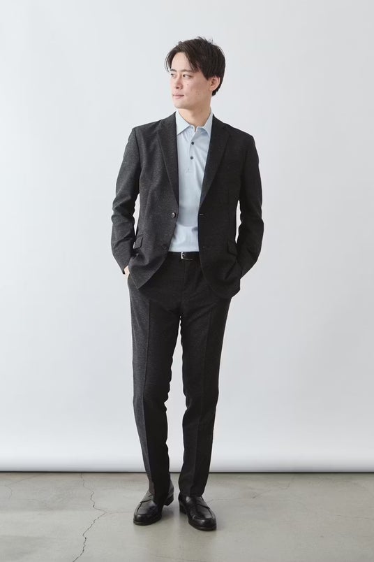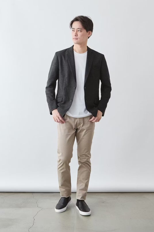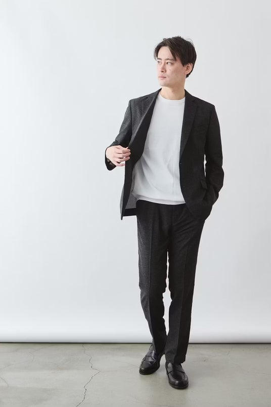そのため、同素材・同色のスラックスと合わせたセットアップなら、