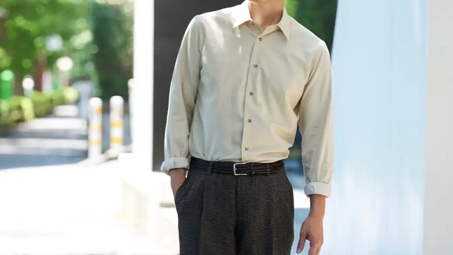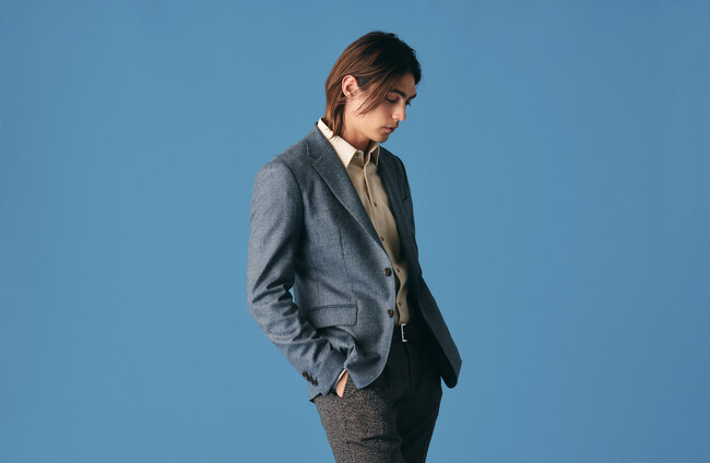 スーツ、セットアップには日本最大の毛織物産地である愛知県の「尾州」ウールを、シャツは兵庫県で200年以上の歴史を持つ「播州織」のコットン生地を採用し、天然繊維ならではの優れた保温性と防風性を持ち合わせています。
