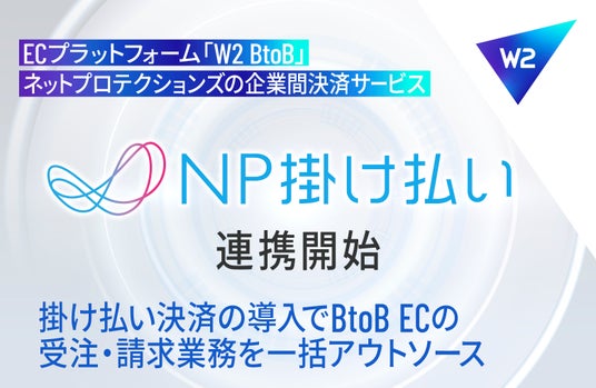 W2株式会社(本社:東京都中央区、代表取締役:山田 大樹、以下「W2」)が提供するBtoB向けECプラットフォーム「W2 BtoB」は、株式会社ネットプロテクションズ(所在地:東京都千代田区、代表取締役社長:柴田 紳、以下「ネットプロテクションズ」)が提供する企業間決済サービス「NP掛け払い」との連携を開始いたしました。