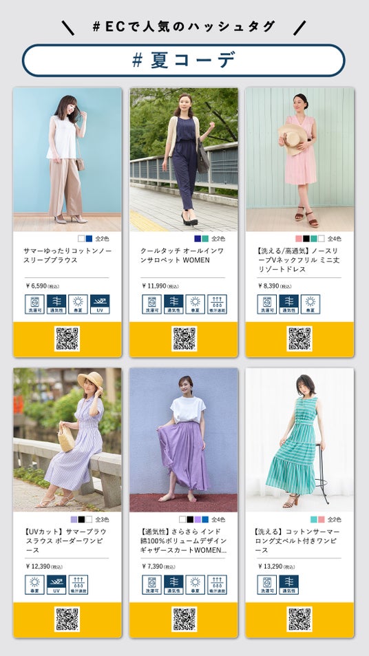 これにより、事業者にとって重要な販売チャネルの1つとなっている、ECでのトレンドや人気の高いハッシュタグと、ハッシュタグに関連した各ブランドの店舗スタッフのコーディネート投稿をデジタルサイネージに放映することが可能となります。来店されたお客様にデジタルサイネージによる商品とのセレンディピティな出会いの体験を提供し、お客様の購買行動に大きく寄与いたします。