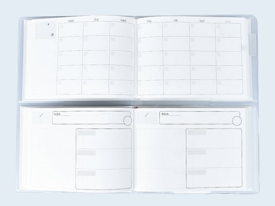 2冊の手帳の上段・下段は異なるレイアウト配置を採用しており、これによりやるべき事を俯瞰して確認できる画期的な仕様となりました。