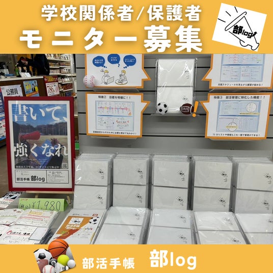 部活動に関わる教育関係者や保護者の皆様を対象に、部活手帳「部log」のモニターの募集を行います。部活動手帳「部log」は、部活生・マネージャーが抱える三大問題である「モチベーション維持」「やるべき事や準備する事の整理」「アルバイトや学業との時間の使い分け」を解決する手帳です。【部log誕生のきっかけ】