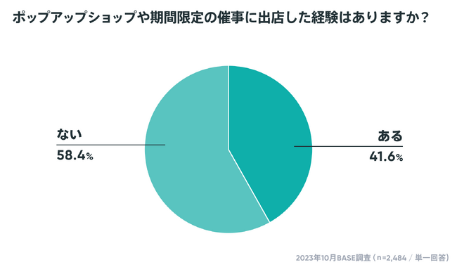 BASE株式会社− 22年の調査と比較し、23年はポップアップショップなどの出店経験が10%増加。行動制限の緩和などが顕著に −
