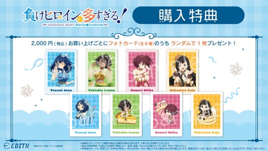株式会社イーディス株式会社イーディス(本社:東京都豊島区、代表取締役:森俊平)は、TVアニメ「負けヒロインが多すぎる!」のオリジナルイラスト「スイーツドレス」を使用した商品をアニメガ×ソフマップにて先行販売いたします。