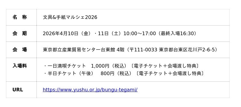 このイベントでは「手紙をもっと楽しくする文具が大集合!」をテーマに文具メーカーやクリエイターが参加、96社115ブース出展されます。文具と手紙にこだわるファンに向けたイベントで、気に入ったアイテムの直接の販売も可能です。
