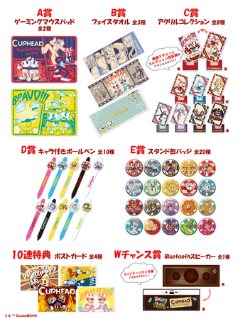 目玉のA賞は、ゲームをする時に使いたい「ゲーミングマウスパッド」(全2種)、B賞「フェイスタオル」(全3種)、C賞「アクリルコレクション」(全8種)他、1回のくじごとに当たるチャンスがある